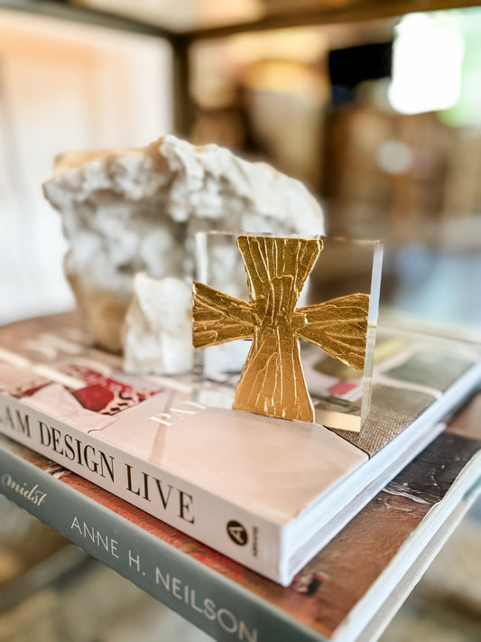 4x4 Gold Cross Intaglio Acrylic